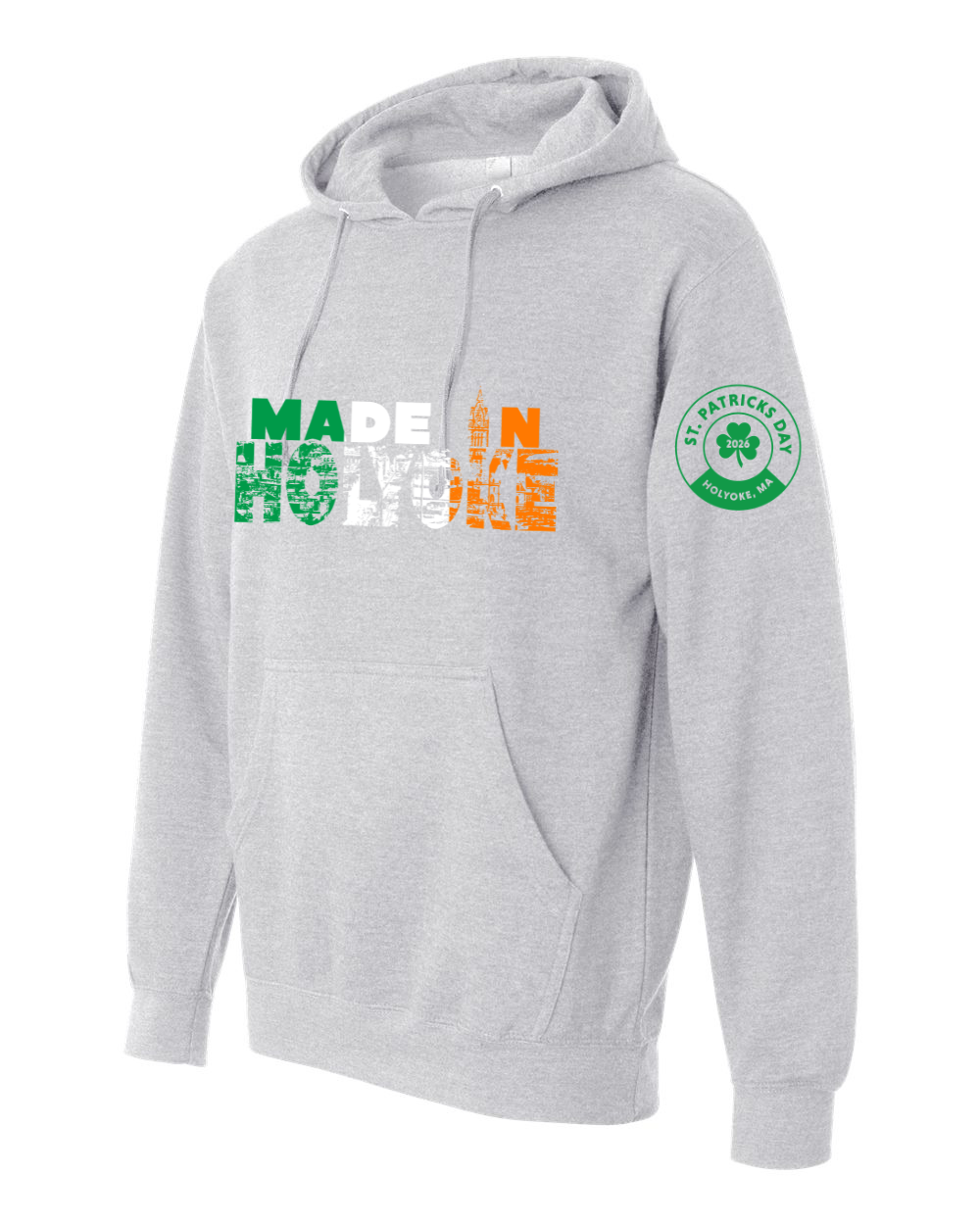 Heritage Collection 2026 Saint Patrick’s Day Made In Holyoke Hoodies! With the classic logo featuring the Irish flag colors, it’s your chance to represent your city and heritage. Comfortable, stylish, and steeped in tradition, these hoodies are a must-have for celebrating Saint Patrick’s Day with pride.